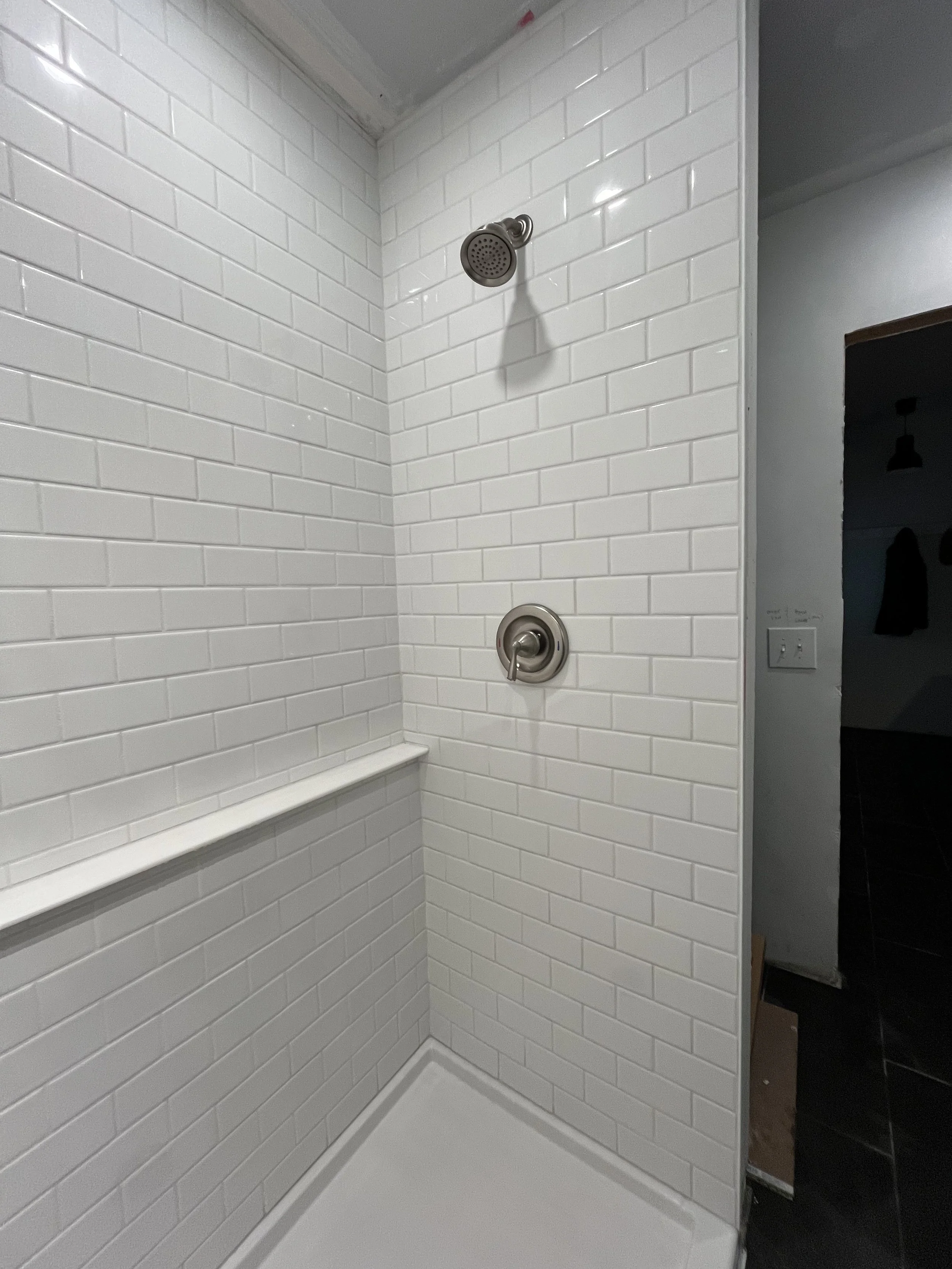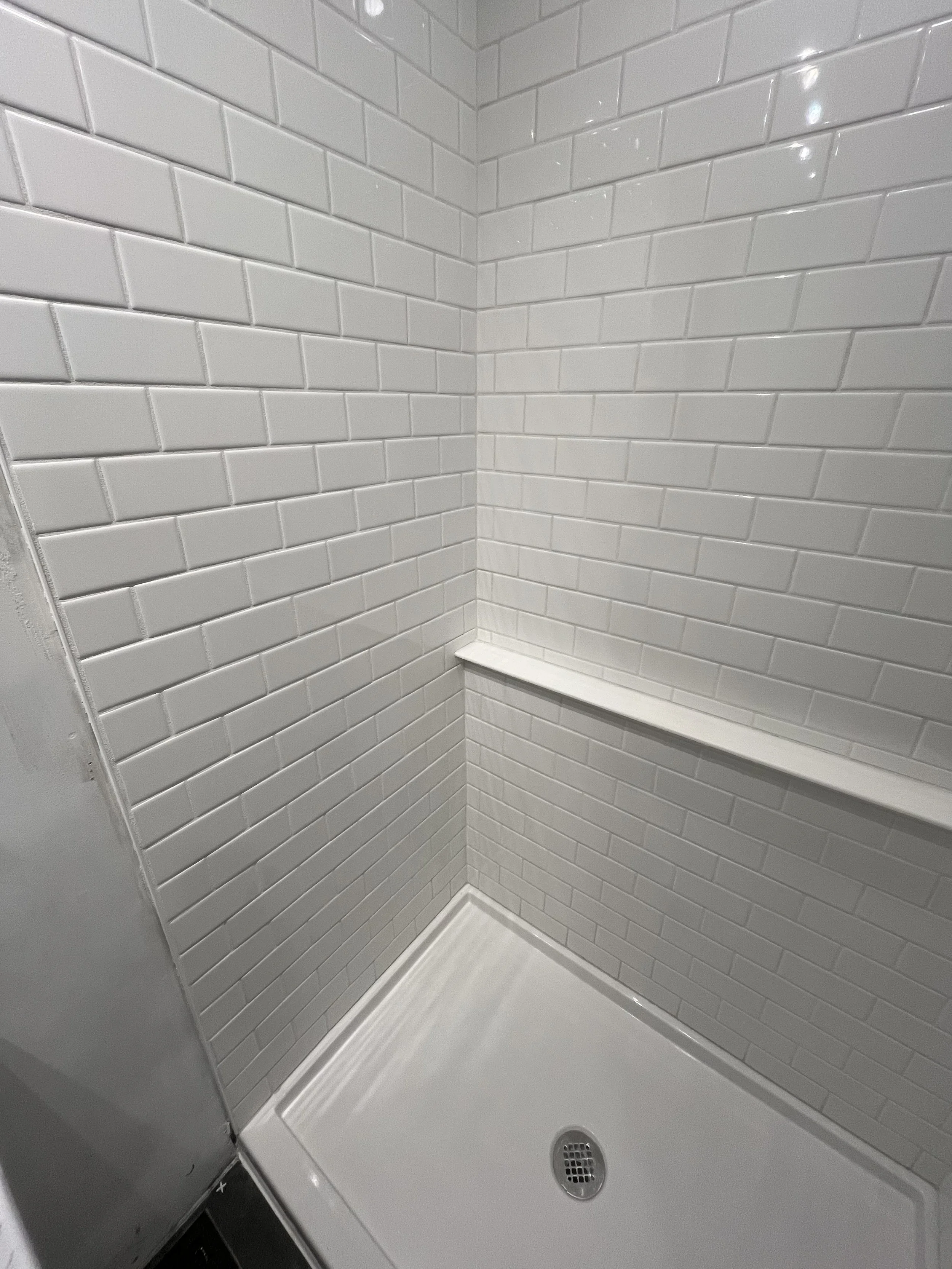 Small shower project with help from Tiny Tim (pictured bottom right)