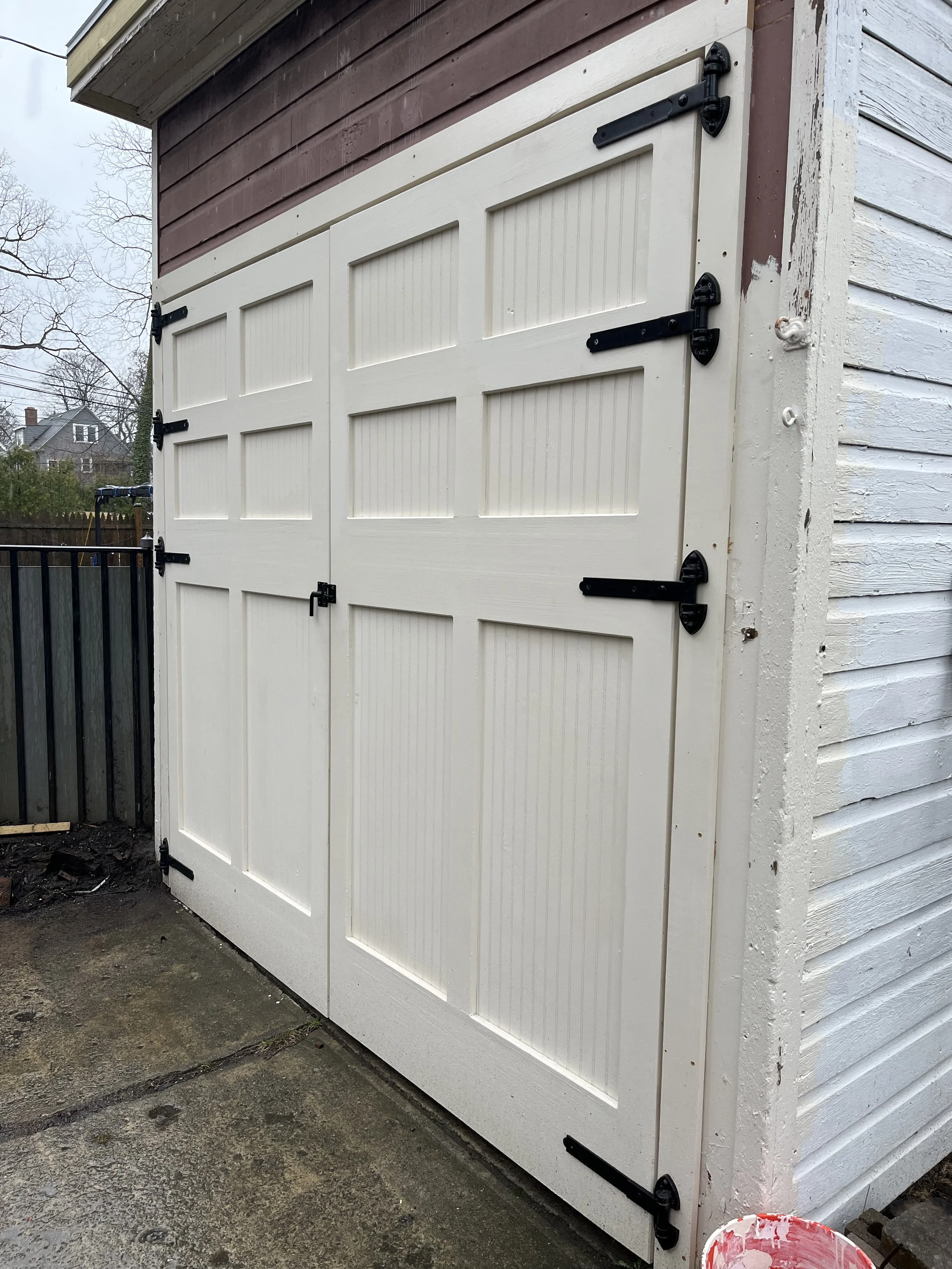Solid 2-1/4” maple doors were fabricated for this garage in West Buffalo.